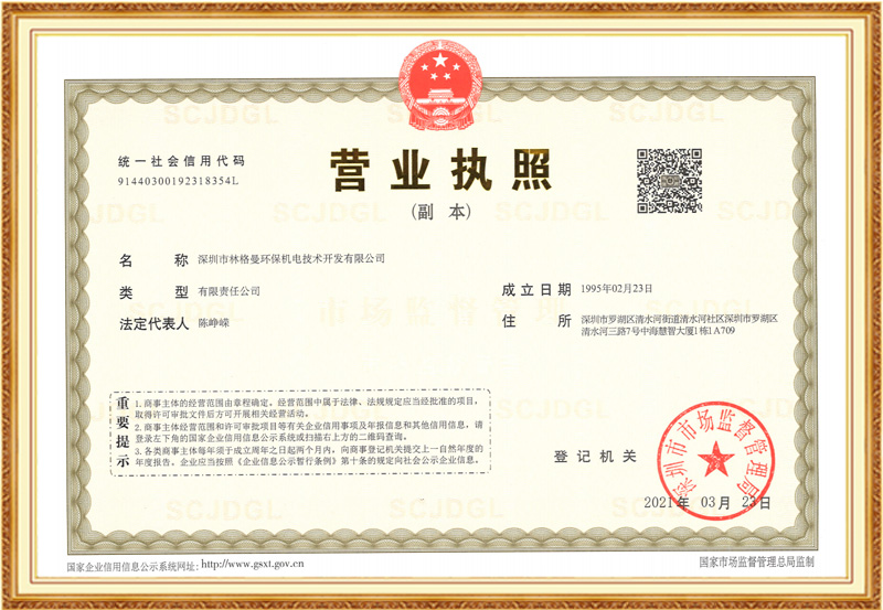 深圳市林格曼環(huán)保機電技術(shù)開發(fā)有限公司于一九九五年二月組建成立 ,經(jīng)深圳市環(huán)境保護局正式資格認證的環(huán)保工程技術(shù)及具有國家知識產(chǎn)權(quán)局頒發(fā)國家專利證書的企業(yè)。