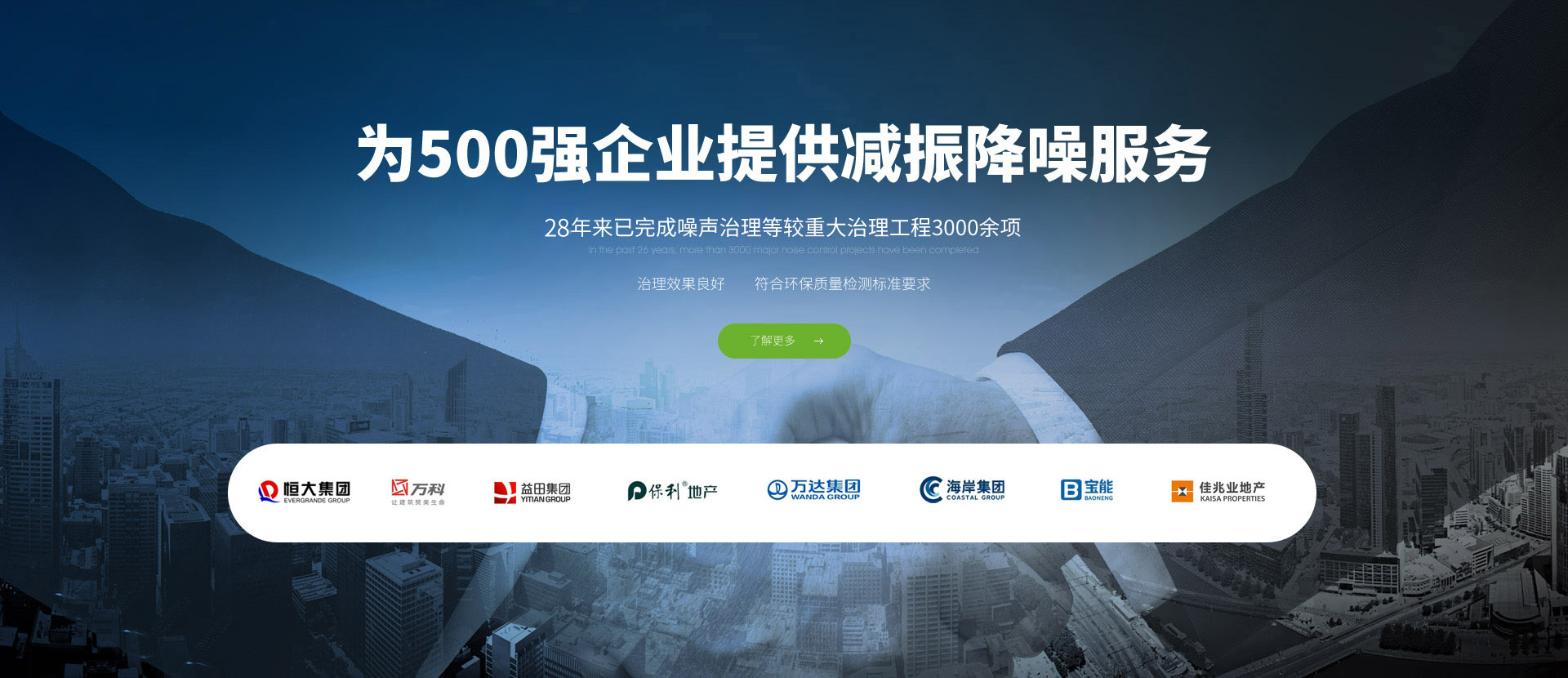 本公司承擔(dān)環(huán)境治理工程項目主要有噪聲與振動控制,噪聲治理方面采用最先進的技術(shù)和最新的科研成果、專利產(chǎn)品,使治理結(jié)果均達到了相應(yīng)的國家噪聲允許標準。經(jīng)多年成功經(jīng)驗,各種噪聲控制設(shè)備的設(shè)計、制造、安裝等均達到了較高水平,從而受到業(yè)主及各部門的一致好評。自一九八七年以來,已完成....